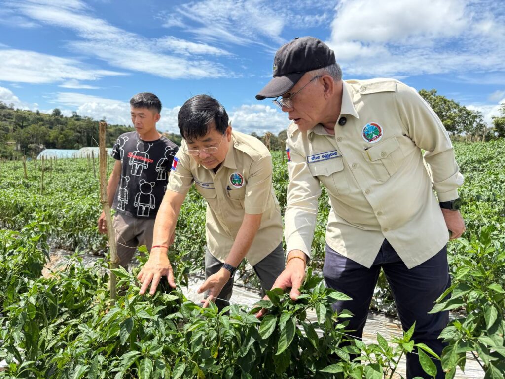 ឯកឧត្តម ហ៊ាន វណ្ណហន រដ្ឋលេខាធិការក្រសួងកសិកម្ម រុក្ខាប្រមាញ់ និងនេសាទ អមដោយថ្នាក់ដឹកនាំមន្ទីរកសិកម្ម រុក្ខាប្រមាញ់ និងនេសាទ ខេត្តមណ្ឌលគីរី កាលពីថ្ងៃទី ១៤ ខែតុលា បានអញ្ជើញចុះពិនិត្យមើលកសិដ្ឋានដាំដុះបន្លែរបស់ជនជាតិរូបនេះ។