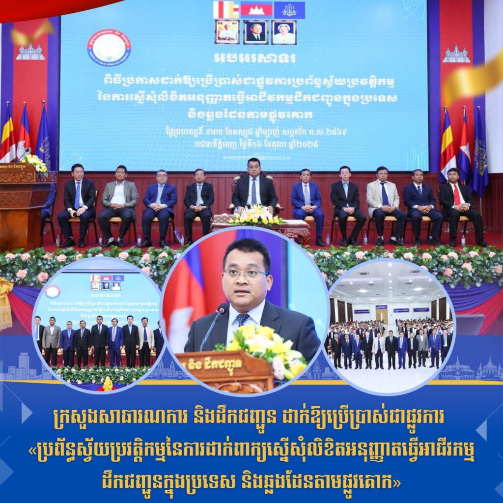 ឯកឧត្តម ប៉េង ពោធិ៍នា រដ្ឋមន្ត្រីក្រសួងសាធារណការ និងដឹកជញ្ជូន បានប្រកាសដាក់ឱ្យប្រើប្រាស់ជាផ្លូវការ «ប្រព័ន្ធស្វ័យប្រវត្តិកម្មនៃការដាក់ពាក្យស្នើសុំលិខិត អនុញ្ញាតធ្វើអាជីវកម្មដឹកជញ្ជូនក្នុងប្រទេស និងឆ្លងដែនតាមផ្លូវគោក» នៅថ្ងៃទី ១៦ ខែតុលា ឆ្នាំ ២០២៥។