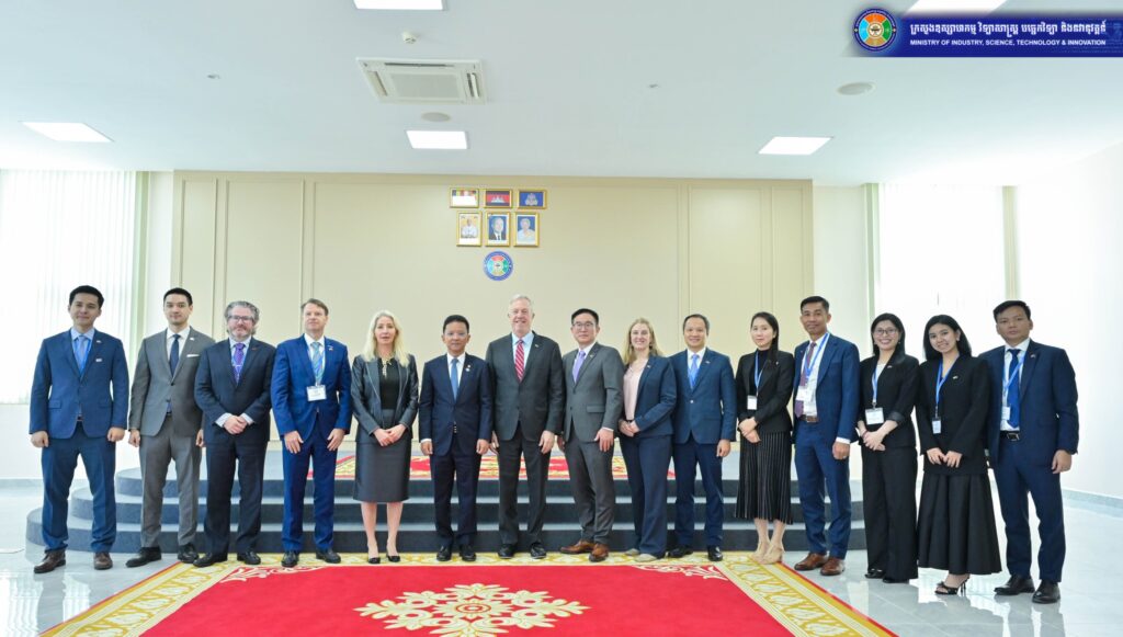 ឯកឧត្តម ហែម វណ្ណឌី រដ្ឋមន្ត្រីក្រសួងឧស្សាហកម្ម វិទ្យាសាស្ត្រ បច្ចេកវិទ្យា និងនវានុវត្តន៍ កាលថ្ងៃទី២ ខែធ្នូ ឆ្នាំ២០២៥ បានទទួលជួបពិភាក្សាការងារជាមួយគណៈប្រតិភូជាន់ខ្ពស់ នៃក្រុមប្រឹក្សាធុរកិច្ចអាមេរិក-អាស៊ាន ដឹកនាំដោយលោក Ted Osius អនុប្រធានជាន់ខ្ពស់ និងជានាយកគ្រប់គ្រងប្រចាំតំបន់ ខណៈដែលសហរដ្ឋអាមេរិកកំពុងពង្រីកវត្តមានធុរកិច្ចរបស់ខ្លួននៅកម្ពុជា។