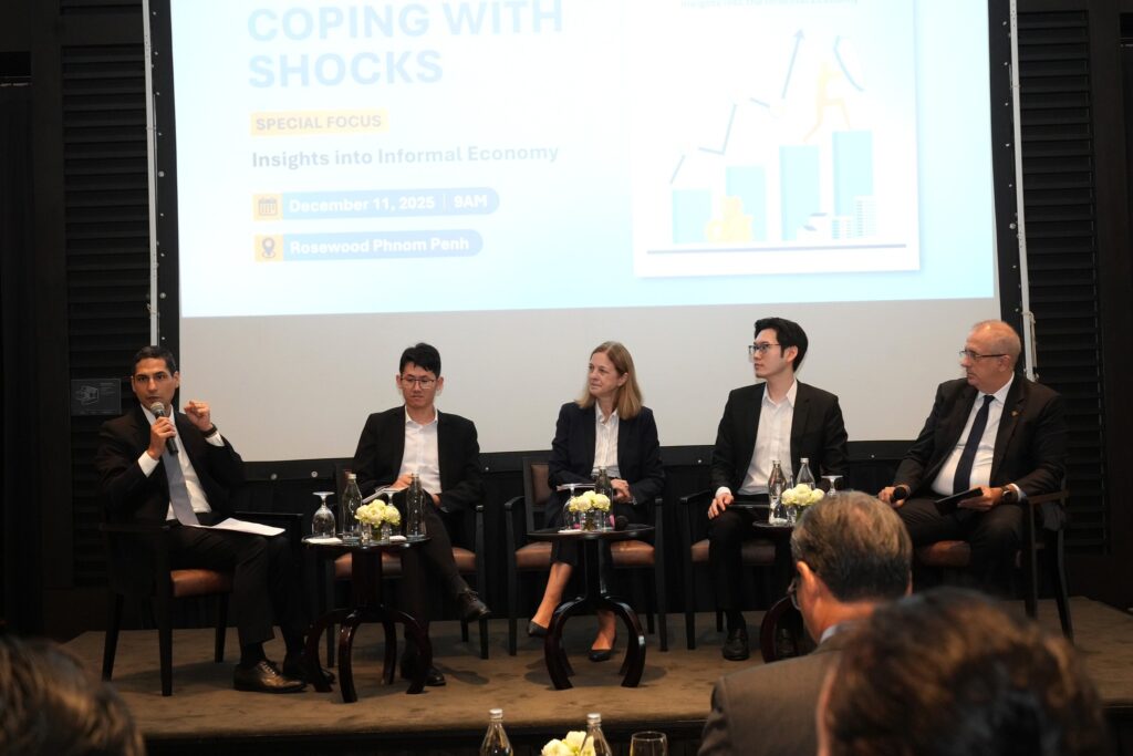 របាយការណ៍បច្ចុប្បន្នភាពសេដ្ឋកិច្ចកម្ពុជា ចេញដោយធនាគារពិភពលោក សម្រាប់ខែធ្នូ ឆ្នាំ២០២៥ ដែលមានចំណងជើងថា «ជម្នះការប្រឈម (Coping with Shocks)» ធ្វើការពិនិត្យមើល ថាតើការធ្លាក់ចុះនៃវិស័យអចលនទ្រព្យ ការរំខាននៅតាមព្រំដែន និងការរឹតបន្តឹងពាណិជ្ជកម្មថ្មីៗ កំពុងមានសម្ពាធដូចម្តេចខ្លះទៅលើកំណើនសេដ្ឋកិច្ច។ ការធ្លាក់ចុះនៃទីផ្សារអចលនទ្រព្យ បានធ្វើឱ្យតម្រូវការក្នុងស្រុក និងសកម្មភាពសំណង់ធ្លាក់ចុះ ខណៈដែលភាពតានតឹងនៅតាមព្រំដែន បានបង្អាក់សកម្មភាពក្នុង​ទីផ្សារការងារ និងក្នុង​វិស័យទេសចរណ៍។