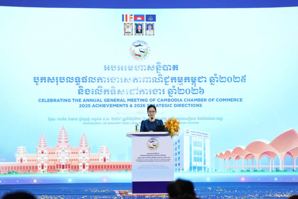 ការផ្តល់នូវអនុសាសន៍របស់ លោកជំទាវ ចម និម្មល ត្រូវបានឡើង នាឱកាសអញ្ជើញជាអធិបតីក្នុងពិធីបិទ “មហាសន្និបាតបូកសរុបលទ្ធផលការងារសភាពាណិជ្ជកម្មកម្ពុជាឆ្នាំ២០២៥ និងលើកទិសដៅការងារ ឆ្នាំ២០២៦” កាលពីថ្ងៃពុធ ទី២៨ ខែមករា ឆ្នាំ២០២៦ នៅមជ្ឈមណ្ឌលសន្និបាត និងពិព័រណ៍កោះពេជ្រ។