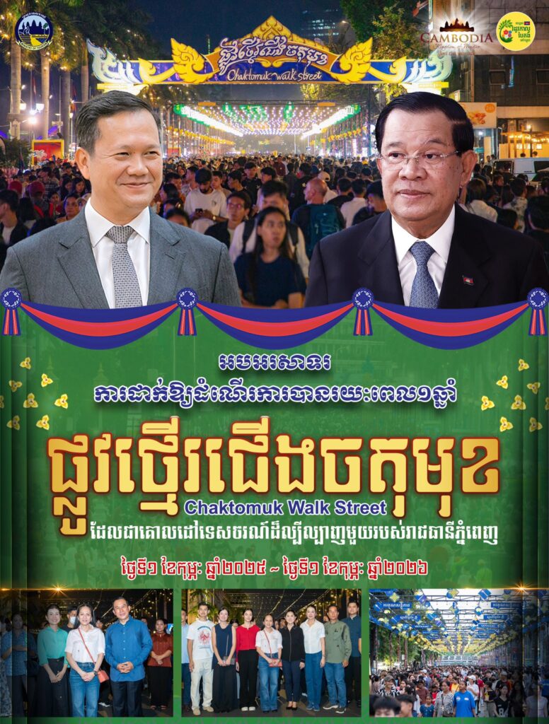 ផ្លូវថ្មើរជើងចតុមុខ ដែលជាគោលដៅទេសចរណ៍ដ៏ល្បីល្បាញមួយរបស់រាជធានីភ្នំពេញ បានដាក់ឱ្យដំណើរការបានរយ:ពេល ១ ឆ្នាំហើយ។ នេះបើយោងការបញ្ជាក់របស់ក្រសួងទេសចរណ៍ កាលពីថ្ងៃទី ២ ខែកុម្ភៈ ឆ្នាំ២០២៦។