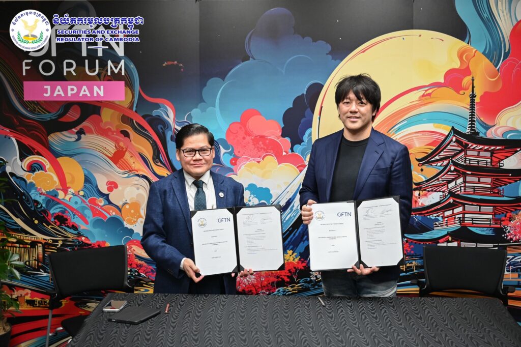 និយ័តករមូលបត្រកម្ពុជា (ន.ម.ក.) និងក្រុមហ៊ុន GFTN Japan Ltd. បានចុះអនុស្សរណៈនៃការយោគយល់គ្នា (MoU) ដើម្បីជំរុញនវានុវត្តន៍បច្ចេកវិទ្យាហិរញ្ញវត្ថុ និងពង្រឹងវិស័យមូលបត្រជាមូលដ្ឋាន សម្រាប់សេដ្ឋកិច្ចឌីជីថលរបស់ប្រទេសកម្ពុជា។
