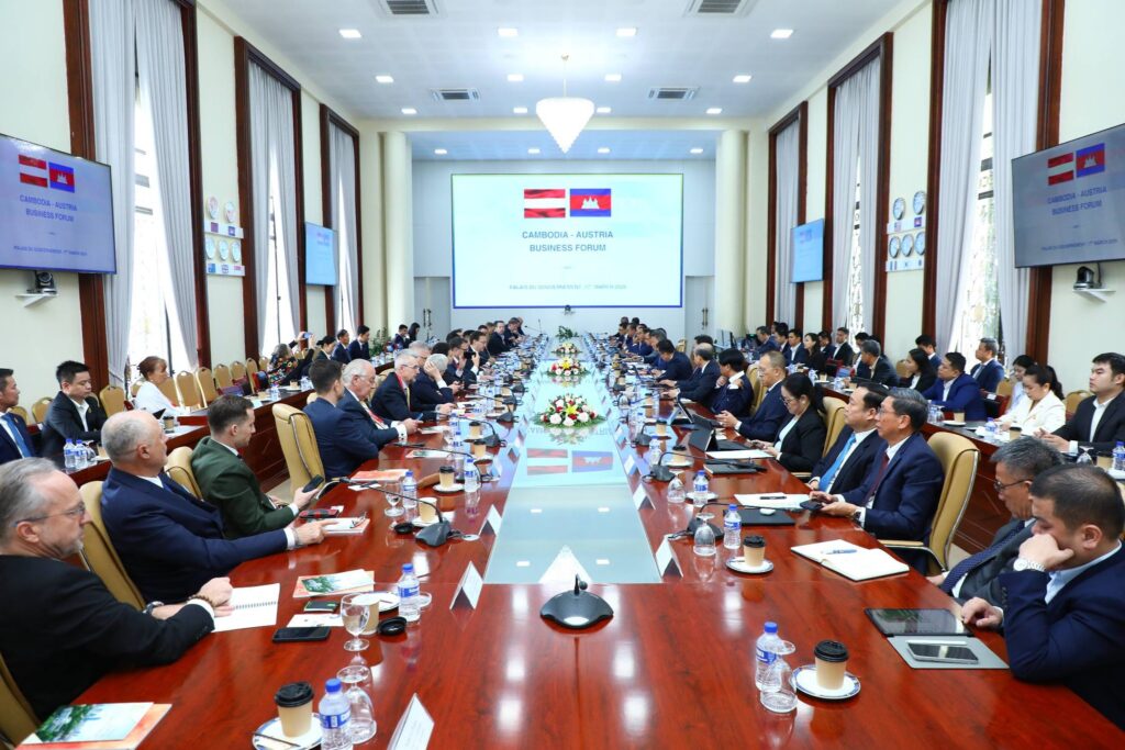 នាព្រឹកថ្ងៃអង្គារ ទី១៧ ខែមីនា ឆ្នាំ២០២៦ ឯកឧត្តម ស៊ុន ចាន់ថុល ឧបនាយករដ្ឋមន្ត្រី អនុប្រធានទី១ ក្រុមប្រឹក្សាអភិវឌ្ឍន៍កម្ពុជា (ក.អ.ក.) បានអញ្ជើញជាអធិបតីក្នុងវេទិកាធុរកិច្ចកម្ពុជា-អូទ្រីស ដោយមានវត្តមានគណៈប្រតិភូក្រុមហ៊ុនអូទ្រីសធំៗចំនួន ១៩ ដឹកនាំដោយលោក លោក Andreas Sumper អនុប្រធានបេសកកម្ម នៃស្ថានទូតអូទ្រីស ប្រចាំព្រះរាជាណាចក្រកម្ពុជា ក្នុងស្មារតីពង្រឹង និងពង្រីកវិសាលភាពវិនិយោគទ្វេភាគី។