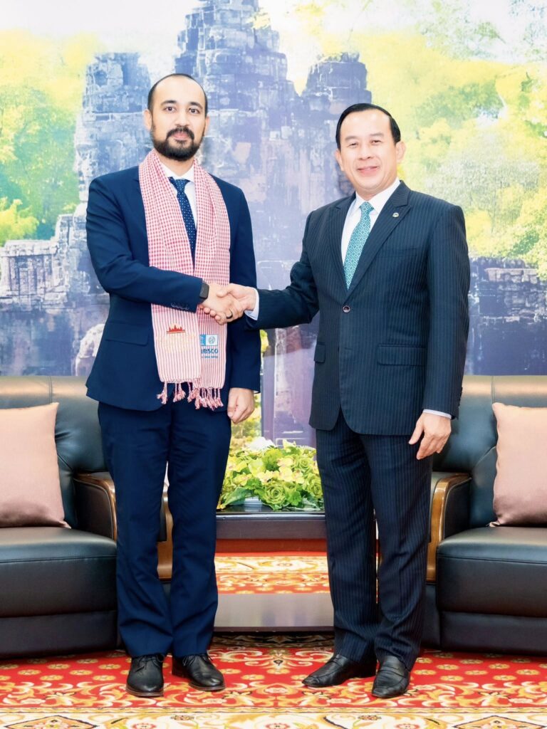 ឯកឧត្តម ហួត ហាក់ រដ្ឋមន្ត្រីក្រសួងទេសចរណ៍ បានអនុញ្ញាតជូន លោក Fahad Al Hassawi ប្រធានតំណាងក្រុមហ៊ុនអាកាសចរណ៍ Emirates Airlines ប្រចាំកម្ពុជា និងសហការី ចូលជួបសម្តែងការគួរសម និងណែនាំអំពីសមាសភាពថ្នាក់ដឹកនាំប្រចាំប្រទេសកម្ពុជា ព្រមទាំងពិភាក្សាការងារអំពីកិច្ចសហប្រតិបត្តិការទេសចរណ៍រវាងកម្ពុជា និងក្រុមហ៊ុន ស្តីពីការចូលរួមគាំទ្ររបស់ក្រុមហ៊ុនក្នុងការអភិវឌ្ឍវិស័យទេសចរណ៍នៅកម្ពុជា នៅទីស្តីការក្រសួងទេសចរណ៍។