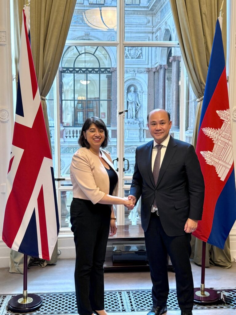 លោកស្រី Seema Malhotra សមាជិកសភា រដ្ឋមន្ត្រីចក្រភពអង់គ្លេសទទួលបន្ទុកតំបន់ឥណ្ឌូ-ប៉ាស៊ីហ្វិក បានជួបពិភាក្សាជាមួយឯកឧត្តម ហ៊ុន ម៉ានី ឧបនាយករដ្ឋមន្រ្តី រដ្ឋមន្រ្តីក្រសួងមុខងារសាធារណៈ នៅថ្ងៃទី៨ ខែមេសា ទីក្រុងឡុងដ៍។ លោកស្រីរដ្ឋមន្ត្រី បានបង្ហាញក្ដីរីករាយក្នុងការពិភាក្សាអំពីសុទិដ្ឋិនិយមចំពោះអនាគតនៃទំនាក់ទំនងរវាងប្រទេសទាំងពីរ។