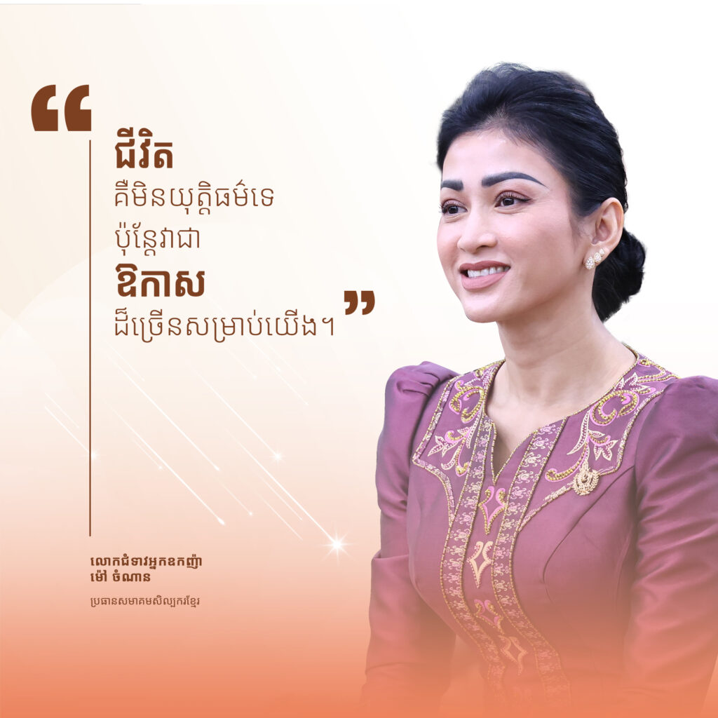 ប្រធានសមាគមសិល្បករខ្មែរ បានលើកឡើងដែរថា ភាពអយុត្តិធម៌ជាកត្តាកំណត់ ឱកាសជាឧបករណ៍ ហើយយើងជាអ្នកបង្កើតនូវអ្វីដែលជាអនាគតនៅចំពោះមុខ៕