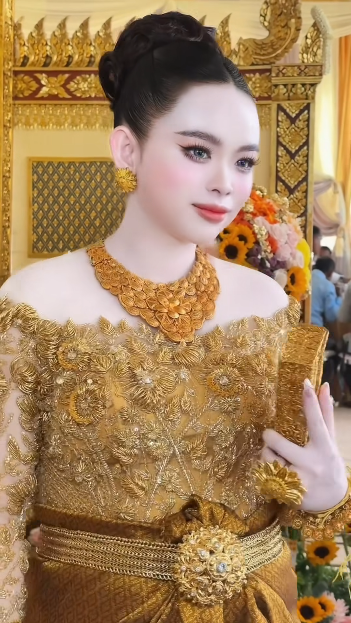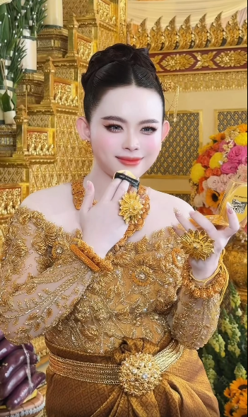 សេដ្ឋិនីអនឡាញដ៏ល្បីល្បាញ ឡៃ ស៊ូយៀក និងស្វាមី ពាក់មាសតាំងពីក្បាលដល់ចុងជើង រួមទាំងសម្លៀកបំពាក់ពណ៌មាសថែមទៀតផង ឆ្លុះក្រហមឆ្អិនឆ្អៅ។ ទាំងខ្សែកក ខ្សែដៃ ក្រវិល ចិញ្ចៀន កាបូបរបស់អគ្គនាយិកា ក្រុមហ៊ុន Miss Sunflower រូបនេះរាប់សិបតម្លឹង ទាំងប្ដីទាំងប្រពន្ធ ដោយមិនគិតពីនាឡិការបស់ស្វាមីទៀតនោះ។