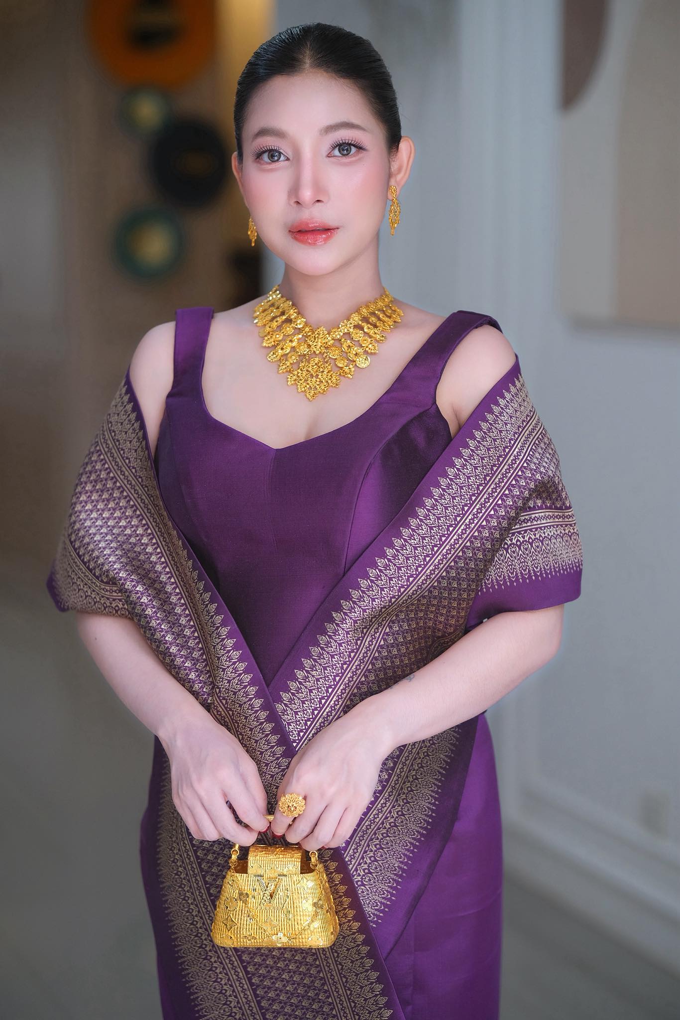 កាបូបមាសស៊ីគ្នានឹងឈុតប្រពៃណីខ្មែរ សំពត់បត់ ច្នៃពីសូត្រមានតម្លៃខ្ពស់ ដែលស្ទីល៍បែបនេះ ត្រូវបាន CEO គ្រឿងសម្អាង ឬម្ចាស់ផលិតផលថែរក្សាសម្រស់ជាច្រើនរូបរបស់ខ្មែរ តែងតែបង្ហាញបង្ហាញពីរសនិយមកាបូបច្នៃពីមាសសុទ្ធ ដែលមានតម្លៃរាប់ម៉ឺនដុល្លារ និងមានទម្ងន់រាប់សិបតម្លឹង។