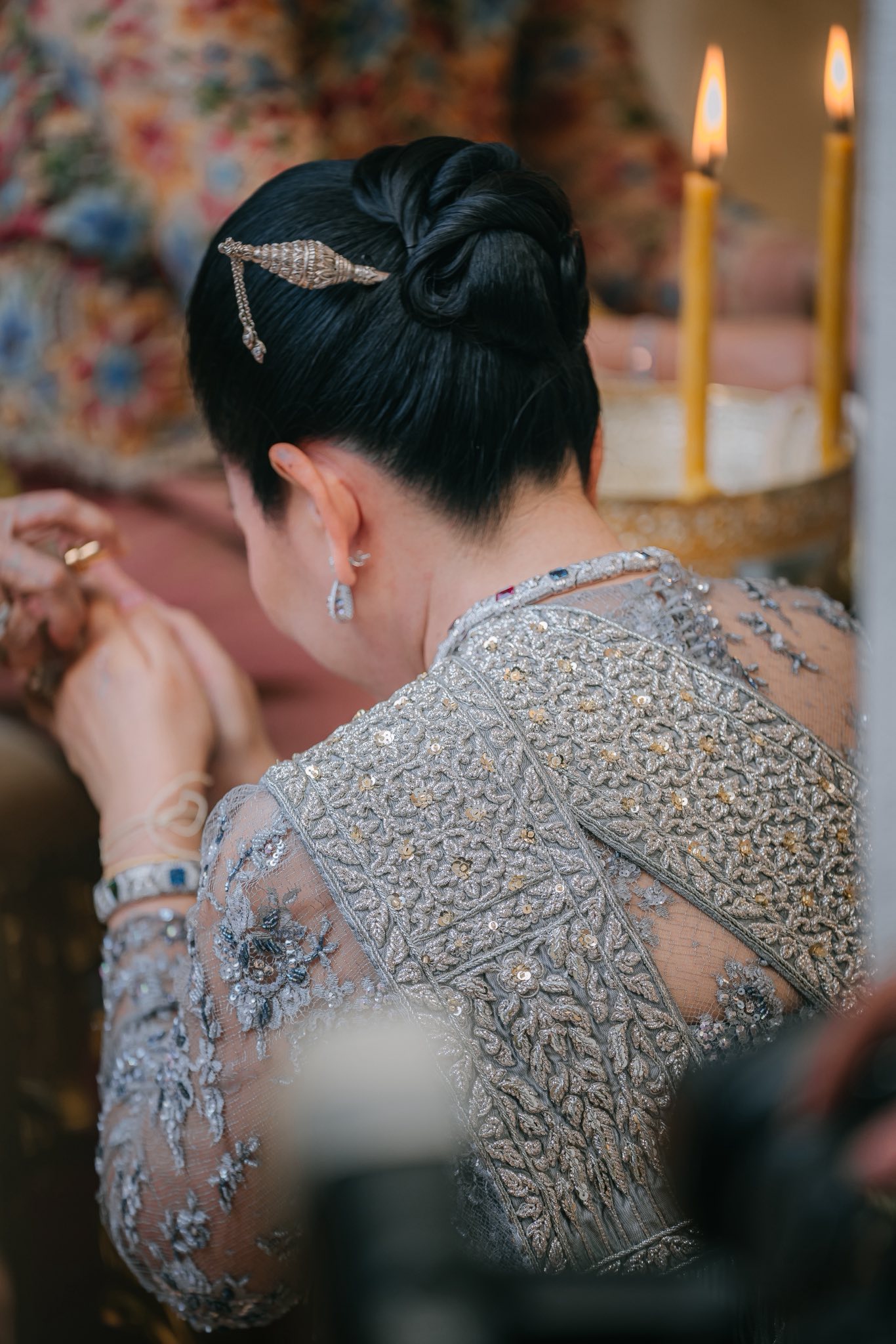 ការរៀបចំខ្លួនបែបប្រពៃណី បូករួមស្បែកជើងប្រេនមានតម្លៃ Jimmy Choo Brown Crystal Embellished Pointed Toe Pumps តម្លៃ ៤ ៥០០ ដុល្លារ និង Jimmy Choo avril crystal covered pointy toe pumps – silver តម្លៃជាង ៤ ៥០០ ដុល្លារ៕