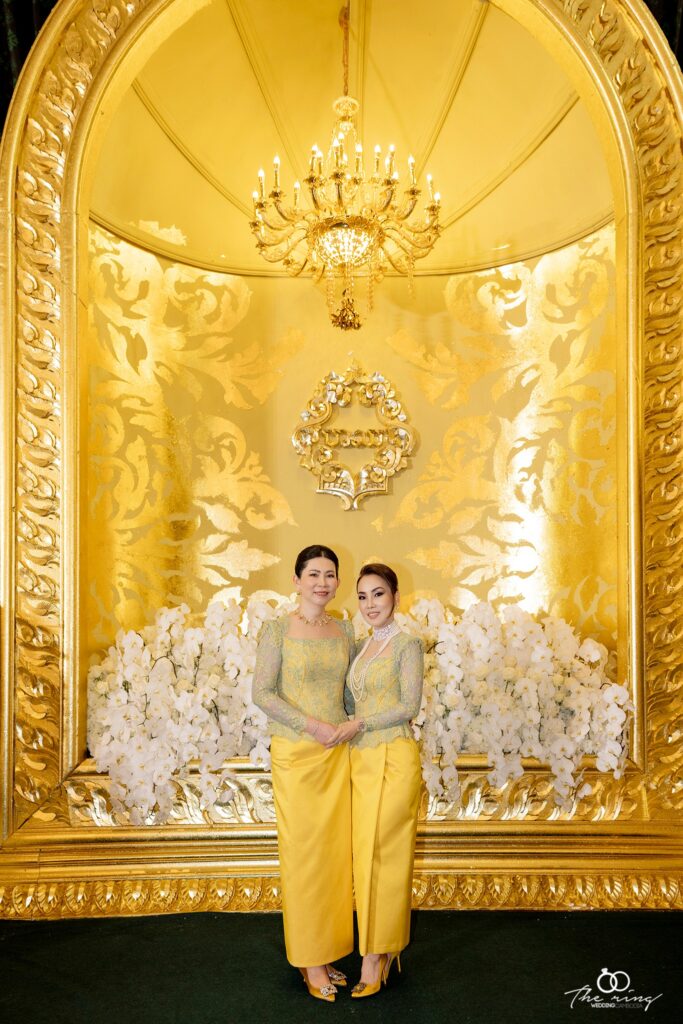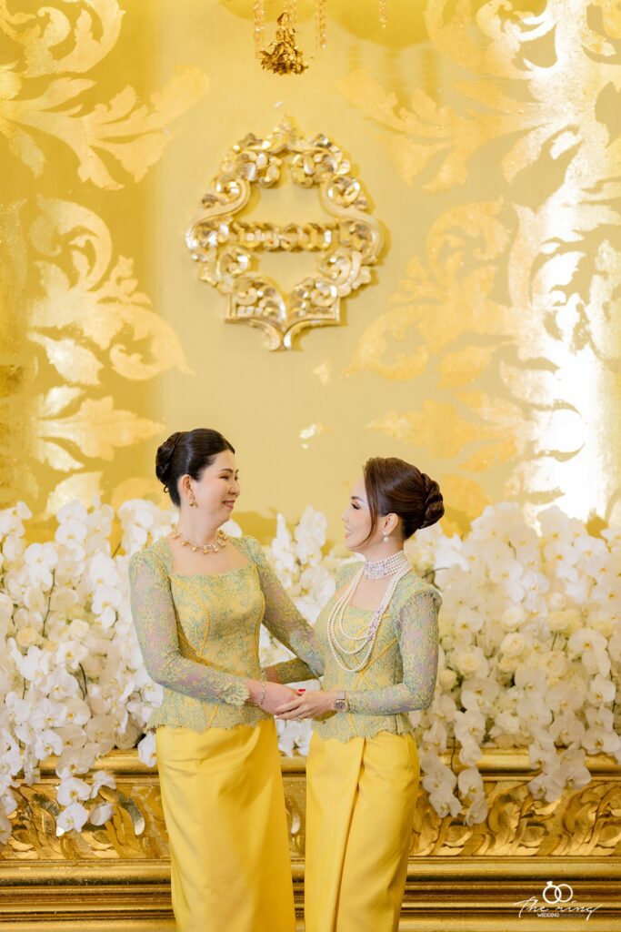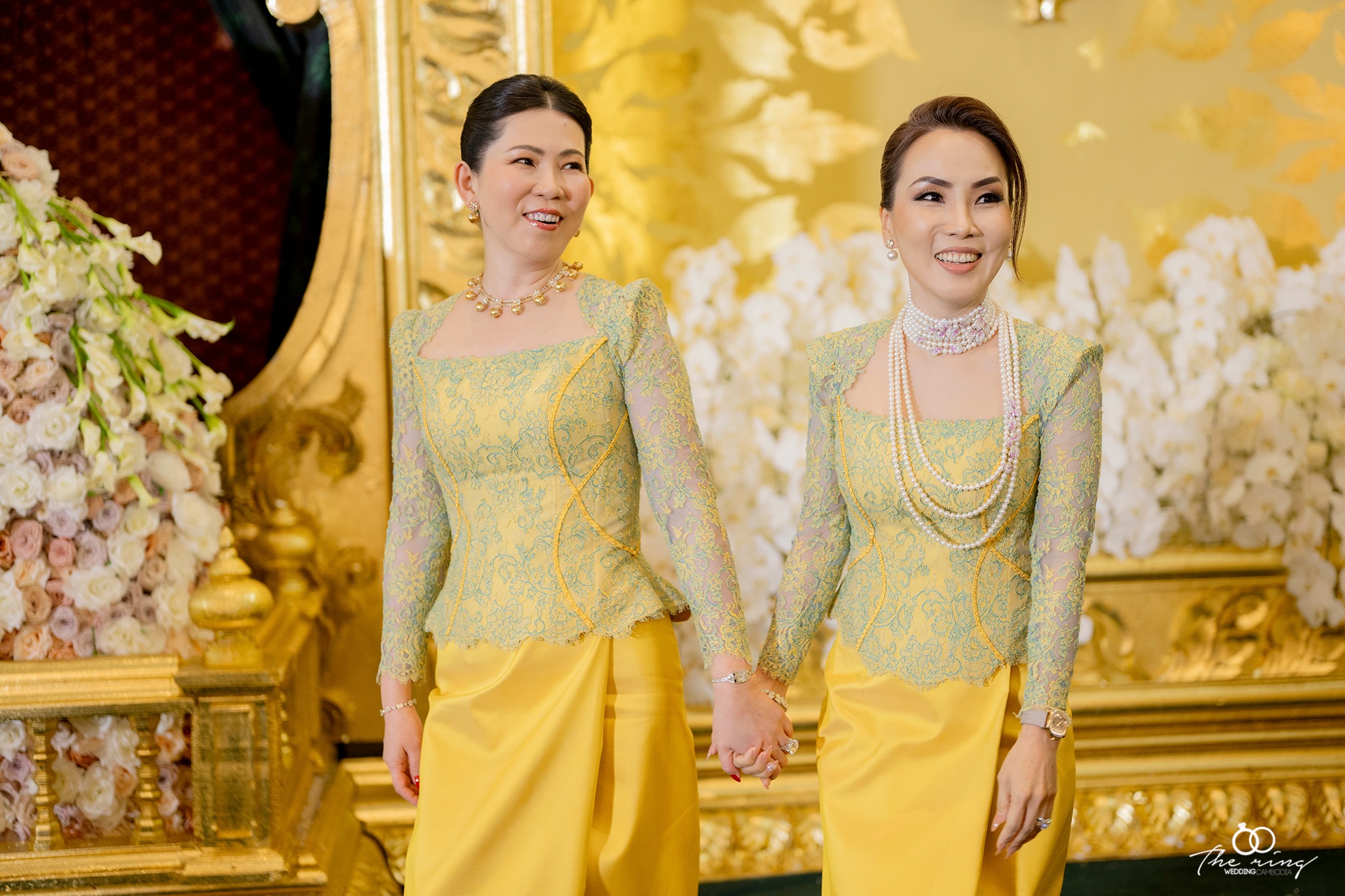 ជាពិសេសក្នុងឈុតផាមួងពណ៌លឿងតែម្ដង ភរិយាឧកញ៉ា ចាប មួយហុង មើលទៅចែងចាំងខ្លាំង។ ក្នុងឈុតប្រពៃណីនោះដែរលោកស្រី លឹម សុខចេង បានបន្ថែមដោយស្បែកជើង Manolo Blahnik Hangisi 105 yellow satin pumps។