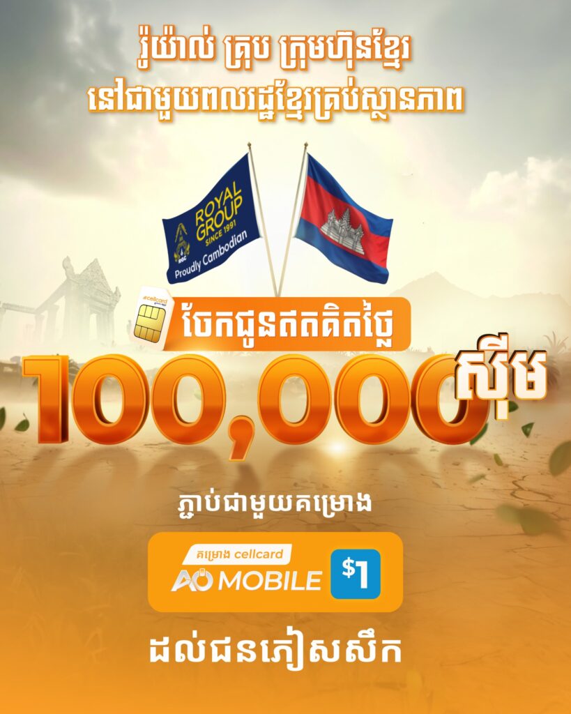 តាមរយៈបណ្ដាញសង្គមហ្វេសប៊ុកផ្លូវការ នៅរសៀលថ្ងៃទី១១ ខែធ្នូនេះ អ្នកជំនួញខ្មែរដ៏ជោគជ័យរូបនេះ បានបង្ហោះថា «បងប្អូនខ្មែរមិនឯកាទេ ក្រុមហ៊ុន រ៉ូយ៉ាល់ គ្រុប នៅទីនេះជាមួយជាមួយពលរដ្ឋខ្មែរគ្រប់ស្ថានភាព ដើម្បីតបស្នងនូវការគាំទ្ររបស់បងប្អូនខ្មែរកន្លងមក ក៏ដូចជារួមចំណែកជួយដល់ជនភៀសសឹកអាចរក្សាទំនាក់ទំនងបានយ៉ាងងាយស្រួល ក្រុមហ៊ុនខ្មែរ រ៉ូយ៉ាល់ គ្រុប សូមចែកជូន 100,000 សែលកាត ស៊ីម ភ្ជាប់ជាមួយនឹងគម្រោង cellcard AO MOBILE $1 ដោយឥតគិតថ្លៃ ដល់បងប្អូនជនភៀសសឹក»។