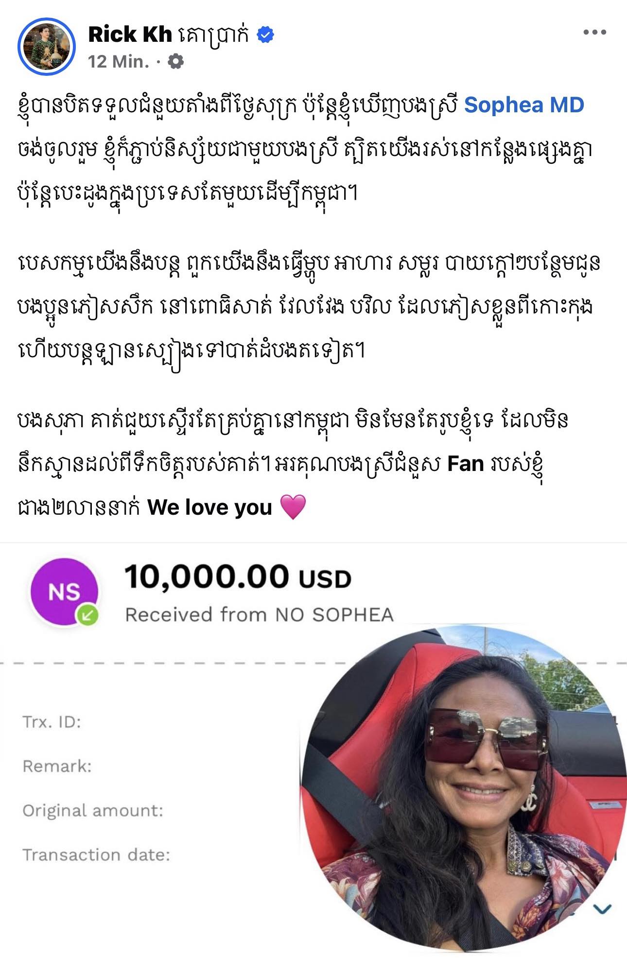 - លោក Rich Kh គោប្រាក់ ១ ម៉ឺនដុល្លារ