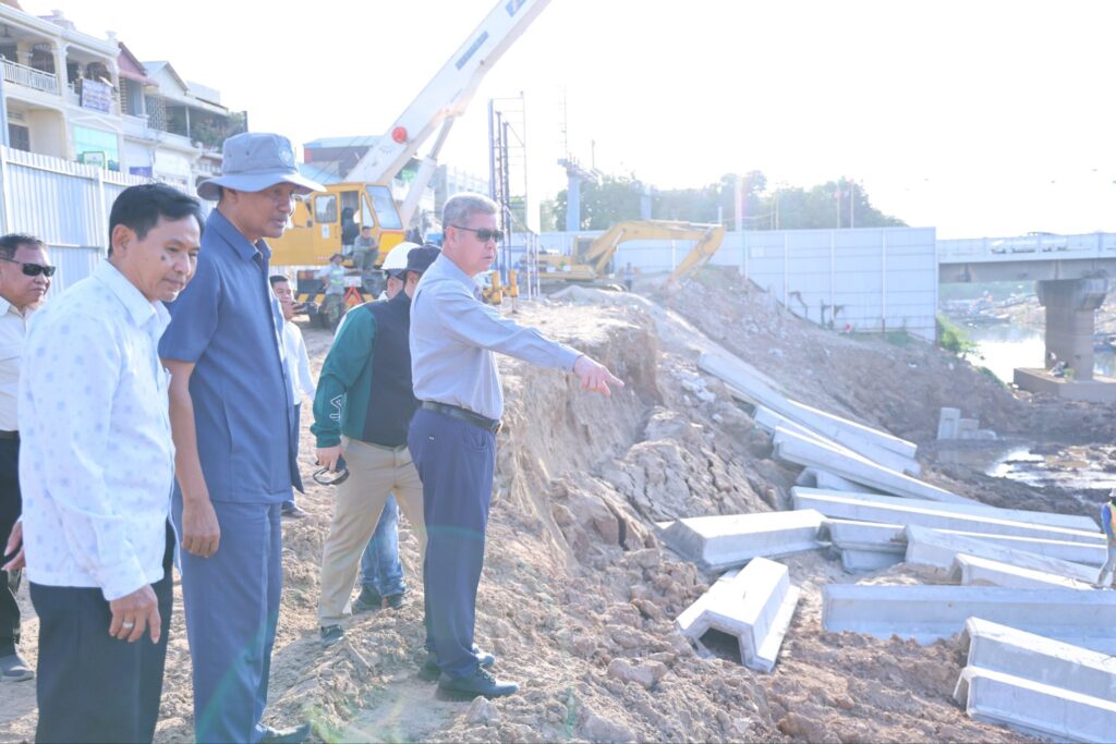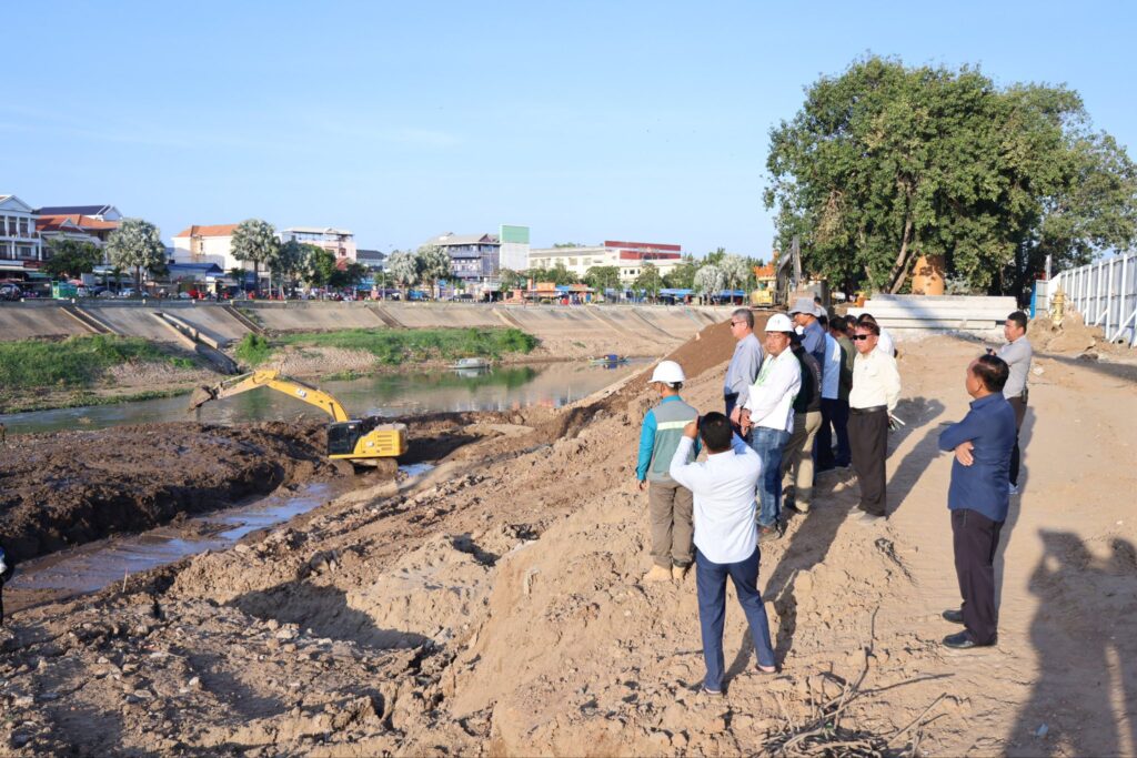 ឯកឧត្តម គួច ចំរើន អភិបាលខេត្តកណ្ដាល បានដឹកនាំមន្ទីរជំនាញពាក់ព័ន្ធ និងមន្ត្រីបច្ចេកទេស ចុះពិនិត្យវឌ្ឍនភាពដំណើរការសាងសង់កែលម្អច្រាំងស្ទឹងព្រែកត្នោត ក្នុងសង្កាត់តាខ្មៅ ក្រុងតាខ្មៅ កាលពីថ្ងៃទី៨ ខែមករា។