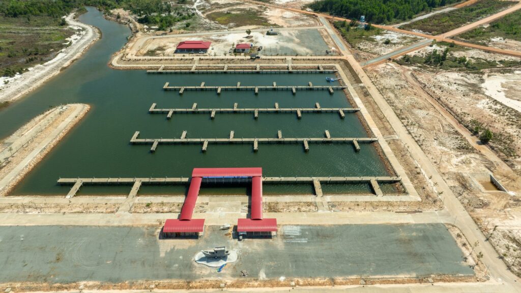 កំពង់ផែនេះ ត្រូវបានសាងសង់ឡើងនៅលើផ្ទៃដីទំហំ ១០ហិកតា និងមានហេដ្ឋារចនាសម្ព័ន្ធផែសំខាន់ៗ រួមមាន៖ កំពង់ផែបេតុងទំហំ ៣,២៣៩ម៉ែត្រការ៉េ, អគាររង់ចាំទំហំ ១១ម៉ែត្រ x ១៣ម៉ែត្រ ចំនួន​ ១ខ្នង, ផ្សារលក់ផលនេសាទទំហំ ២០ម៉ែត្រ x ៣០ម៉ែត្រ និងរោងរង់ចាំអ្នកដំណើរចំនួន ២កន្លែង ទំហំ ៦ម៉ែត្រ x ១៥ម៉ែត្រ។ ចំណែកឯផ្លូវនាវាចរណ៍មានប្រវែងប្រមាណ ១០គីឡូម៉ែត្រ។