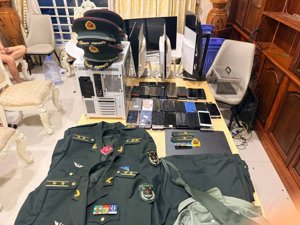 ប្រតិបត្តិការដែលបានធ្វើឡើងកាលថ្ងៃទី ១៧ ខែមីនា សមត្ថកិច្ចបានដកហូតសម្ភារៈភស្តុតាងមួយចំនួន រួមមាន៖ ទូរសព្ទដៃ ១២៣គ្រឿង, កុំព្យូទ័រ All in One ៨គ្រឿង, ម៉ូនីទ័រ ២គ្រឿង, កុំព្យូទ័រយួរដៃ ១គ្រឿង, CPU ១គ្រឿង មួក និងឯកសណ្ឋានក្លែងបន្លំជាសមត្ថកិច្ចចិនចំនួន ៣កំប្លេ។
