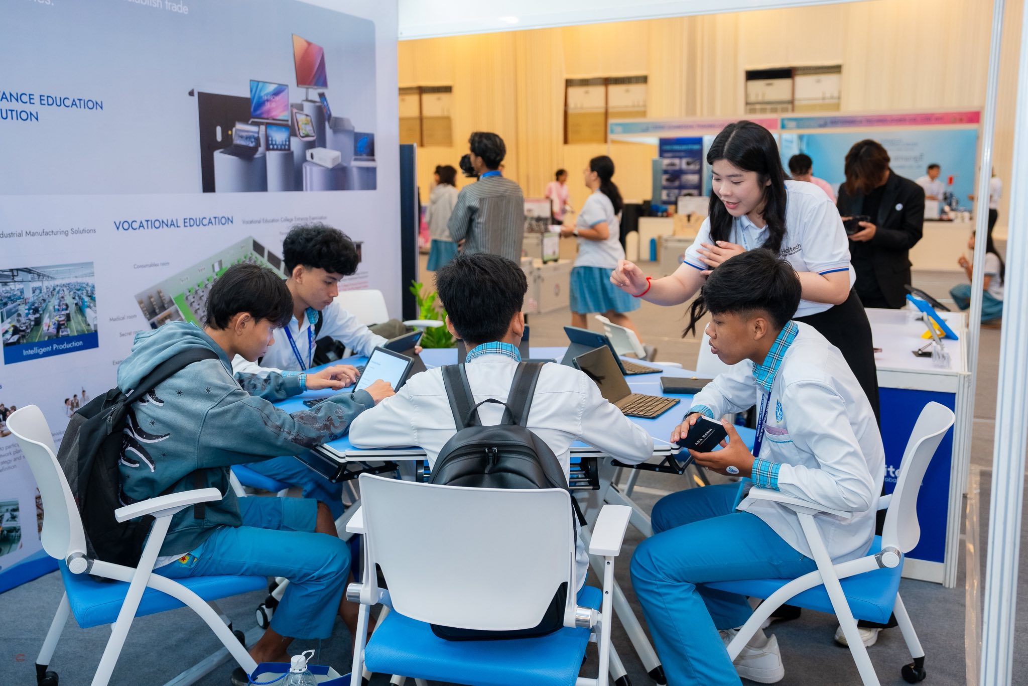 ក្រៅពីសិស្សនិស្សិតជាច្រើនចាប់អារម្មណ៍ ថ្នាក់ដឹកនាំស្ថាប័នធំៗទាំងអស់ក៏បង្ហាញពីការគាំទ្រ និងពេញចិត្តពេលបានឃើញ ចាប់ប៉ះ និងធ្វើតេស្តផលិតផល «K Haitech» របស់ក្រុមហ៊ុន KH Haitech ដែលល្បីតាំងពីដើមឆ្នាំ ២០២៦ មកហើយនោះ។