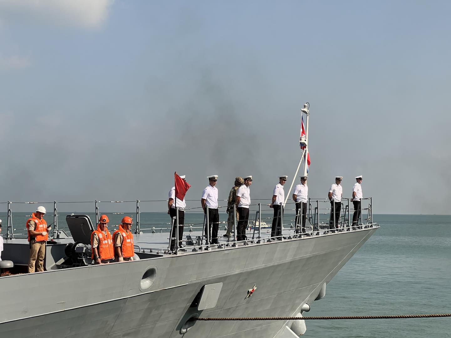 នៅព្រឹកថ្ងៃ ៦ ខែមេសា ឆ្នាំ ២០២៦ នេះមាននាវាចម្បាំងដ៏មានអនុភាពលើលំហសមុទ្ររបស់រុស្ស៊ី ២ គ្រឿង បានចូលចតនៅកំពង់ផែស្វយ័តក្រុងព្រះសីហនុ តាមការគ្រោងទុក។