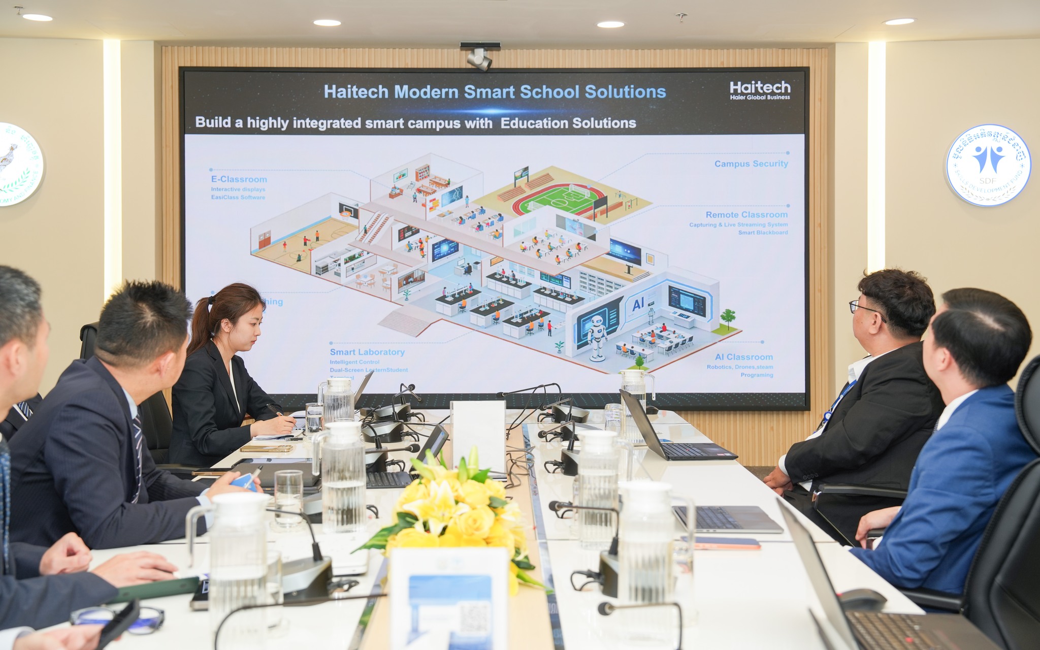 កាលពីថ្ងៃ ៦ ខែមករា ឆ្នាំ ២០២៦ អ្នកឧកញ៉ា សំ សុខនឿន សមាជិកក្រុមប្រឹក្សាភិបាល នៃសមាគមឧកញ៉ាកម្ពុជា និងជាអគ្គនាយកក្រុមហ៊ុន KH Haitech បានដឹកនាំគណៈប្រតិភូ នៃក្រុមហ៊ុនបច្ចេកវិទ្យា Haier Haitech និង KH Haitech ចូលជួបពិភាក្សាការងារជាមួយ ឯកឧត្ដម គី សុខគីម នាយកប្រតិបត្តិមូលនិធិអភិវឌ្ឍន៍ជំនាញ (SDF) លើកិច្ចសហការអភិវឌ្ឍធនធានមនុស្សសម្រាប់គម្រោងវិនិយោគថ្មីក្នុងការបង្កើតរោងចក្រផលិតឧបករណ៍បច្ចេកវិទ្យានៅកម្ពុជា និងការពង្រីកទៅកាន់ការផលិតឧបករណ៍អេឡិចត្រូនិកនានាដែលមានតម្រូវការក្នុងទីផ្សារនាពេលអនាគត។