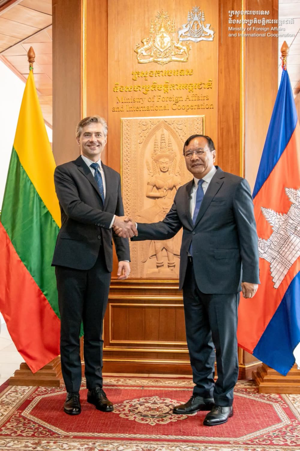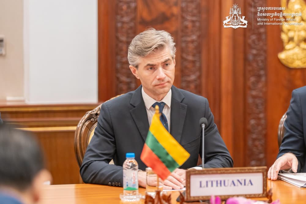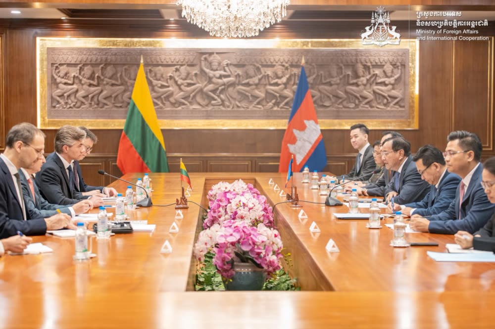 ក្នុងជំនួបកិច្ចពិភាក្សាការងាររវាង លោក ប្រាក់ សុខុន ឧបនាយករដ្ឋមន្ត្រី រដ្ឋមន្ត្រីការបរទេស និងសហប្រតិបត្តិការអន្តរជាតិនៃព្រះរាជាណាចក្រកម្ពុជា និងលោក កេស្ទូទីស ប៊ូឌ្រីស រដ្ឋមន្ត្រីការបរទេសនៃសាធារណរដ្ឋលីទុយអានី ក្នុងអំឡុងពេលនៃការបំពេញទស្សនកិច្ចផ្លូវការរបស់លោករដ្ឋមន្ត្រី នៅកម្ពុជា ពីថ្ងៃ ២៤-២៥ ខែមេសា ឆ្នាំ ២០២៦។