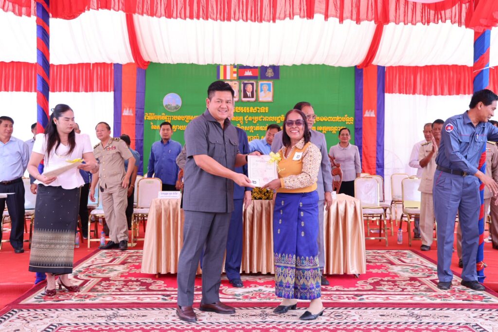 ពិធីចែកប័ណ្ណកម្មសិទ្ធិដីធ្លីនេះ ត្រូវបានធ្វើឡើងកាលពីថ្ងៃទី ១៤ ខែវិច្ឆិកា ឆ្នាំ ២០២៥ ក្រោមអធិបតី ឯកឧត្តម ឈឿន ប៊ុណ្ណារ័ត្ន រដ្ឋលេខាធិការ ក្រសួងរៀបចំដែនដី នគរូបនីយកម្ម និងសំណង់ និងជាប្រធានក្រុមការងារសម្របសម្រួលដោះស្រាយវវិវាទដីធ្លីខេត្តកណ្តាល ឯកឧត្តម នូ សាខន ប្រធានក្រុមប្រឹក្សាខេត្ត និងឯកឧត្តម គួច ចំរើន អភិបាល នៃគណៈអភិបាលខេត្តកណ្ដាល ព្រមទាំងមានការអញ្ជើញចូលរួមផងដែរពីសំណាក់អាជ្ញាធរក្រុងអរិយក្សត្រ មន្ទីរជុំវិញខេត្ត និងប្រជាពលរដ្ឋជាច្រើនរូប។
