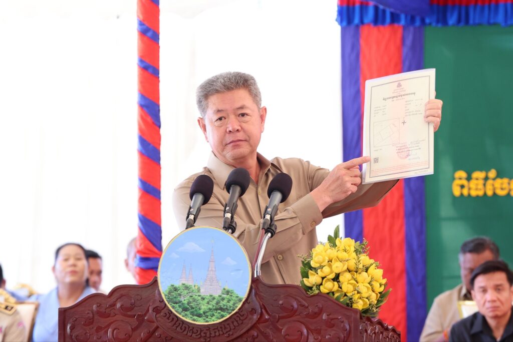 ឯកឧត្តមអភិបាលខេត្ត បានគូសបញ្ជាក់បន្ថែមថា៖ ភូមិទាំងពីរដែលទទួលបានបណ្ណកម្មសិទ្ធនាពេលនេះ រាល់ឯកសារទាំងអស់ដែលមិនមែនជាប័ណ្ណកម្មសិទ្ធិនេះមិនអាចយកទៅលក់ ឬយកប្រើប្រាស់អ្វីផ្សេងទៀតបានទេ ហើយបើចង់លក់ ឬយកទៅប្រើប្រាស់អ្វីផ្សេងៗត្រូវចុះបញ្ជីដីធ្លីឡើងវិញ ពិសេសអាជ្ញាធរទាំងអស់មិនអាចបញ្ជាក់លើឯកាសារផ្សេងៗក្រៅពីបណ្ណដីធ្លីនេះបានឡើយ។